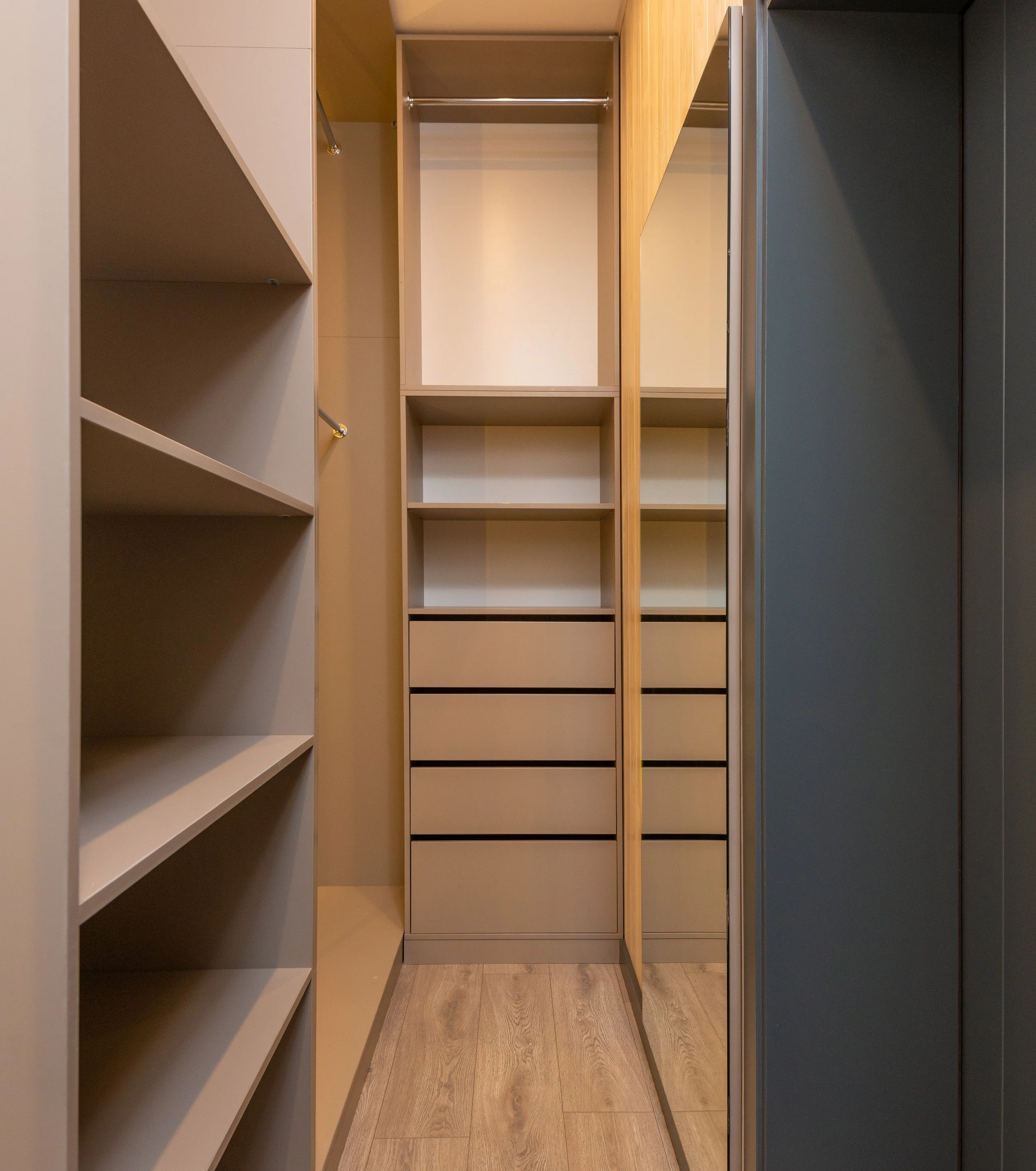 If your walk-in closet is tiny, you may want to consider installing a hanging rod system. This storage allows you to hang up your clothes instead of storing them in drawers or shelves. Make sure that the rods don't take up too much space, and ensure that they are evenly spaced apart so that you don't have one side of your closet empty while the other has loads of clothes hanging from it.